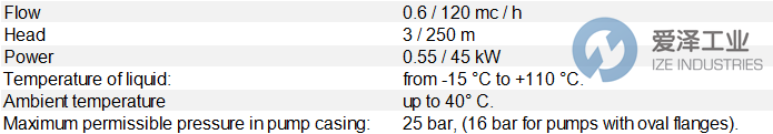 CALPEDA泵MXV系列MXV40-915技術參數及介紹