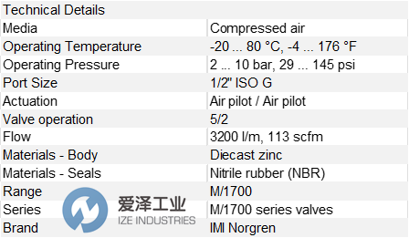NORGREN先導閥M1700系列M/1704/3技術參數及介紹