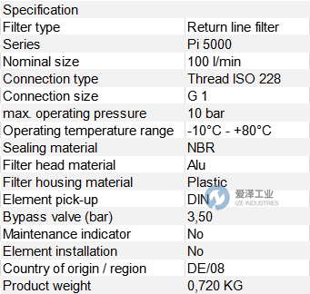 FG過濾器PI50010-047技術參數介紹