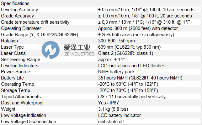 如果有任何關于SPECTRA激光儀GL622N的疑問,請隨時與我們溝通(021-31006702)。我們將盡全力解決您的問題。
