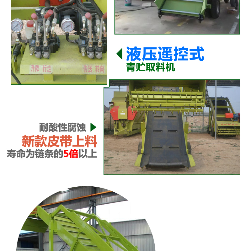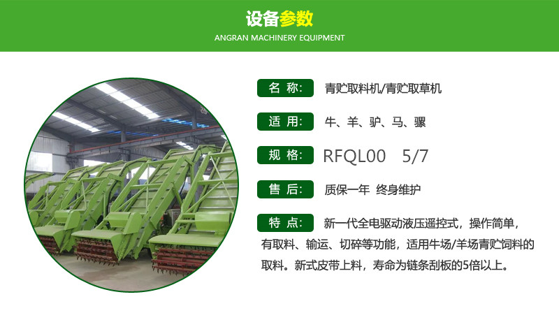 青貯取料機具有自主創新自主的全新系列機型,采用液壓控制、電能啟動、四輪驅動裝置,具有結構合理、性能、動力充足、操作簡單、生產效率高、適應性強的特點,是畜牧養殖業的一款機器。