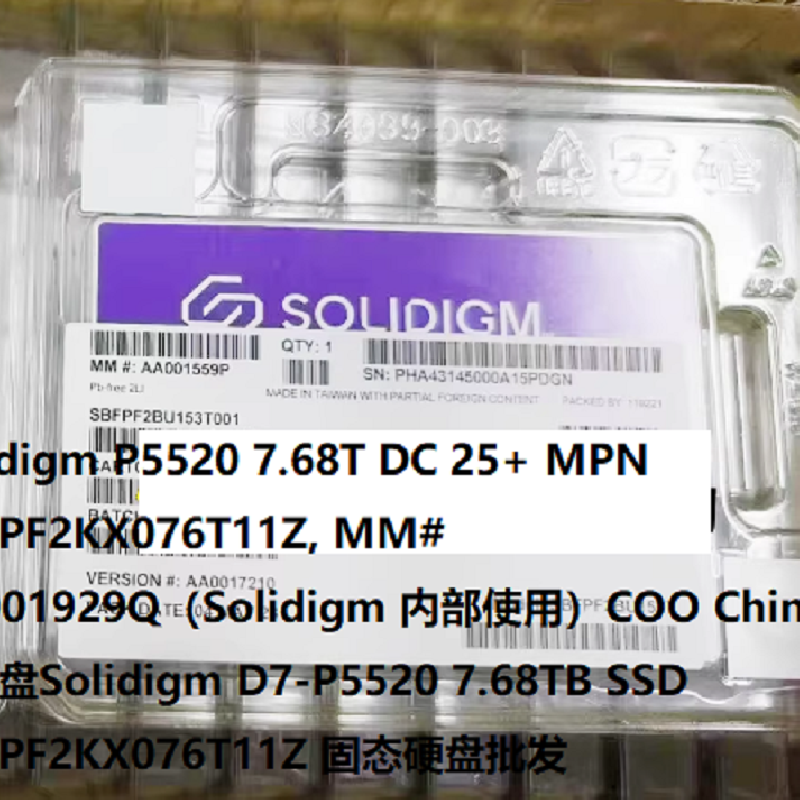 Solidigm P5520 7.68T DC 25+ MPN SSDPF2KX076T11Z, MM# AA001929Q(Solidigm 內部使用)COO China固態硬盤Solidigm D7-P5520 7.68TB SSD SSDPF2KX076T11Z 固態硬盤批發TEL:13910098771