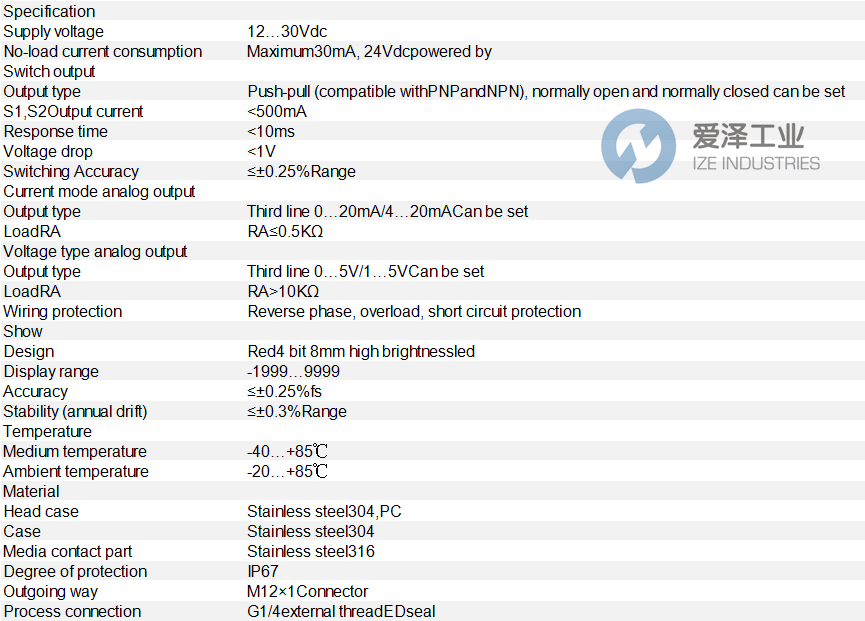 PN3000 配備陶瓷厚膜傳感元件,輸出并顯示標準電信號。全金屬外殼,330° 可旋轉高亮 LED 顯示屏,雙按鍵和友好的菜單設計,多種工藝連接。