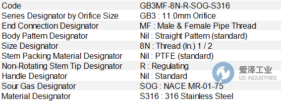 HY LOK針閥GB系列GB3MF-8N-R-SOG-S316技術參數及選型